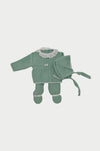 - Sweet green wool set: knitted all-in-one with collar & bonnet