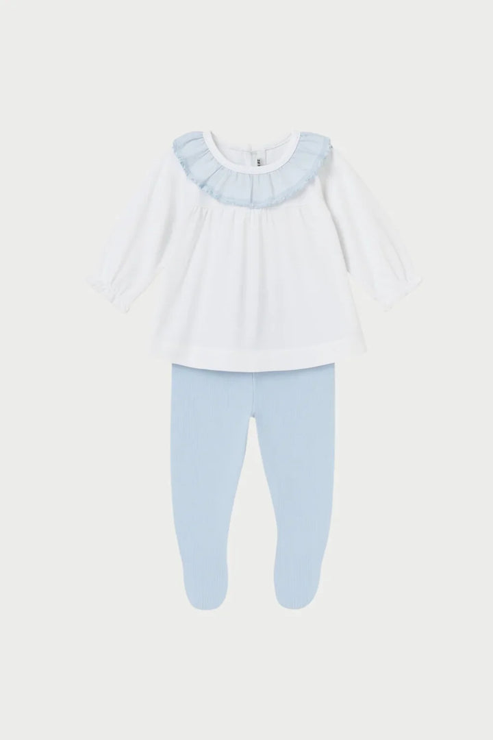 - 100% cotton white and blue set with floaty collar and blue pants
