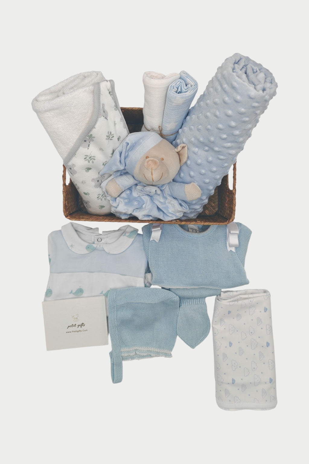 All our layettes come with a wooden or wicker basket.