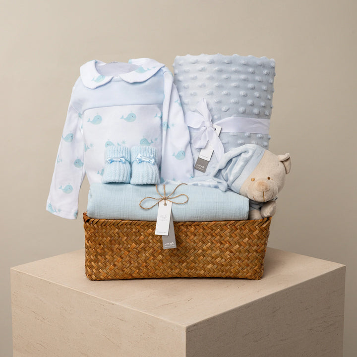 Surprise the future mom with this gorgeous baby gift layette,specially designed for the upcoming little baby boy.