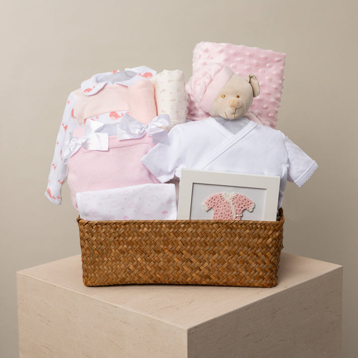 Spoil the future mom with all necessary and adorable items to get started on the right foot when the new member of the family arrives and give her this beautiful baby gift basket.