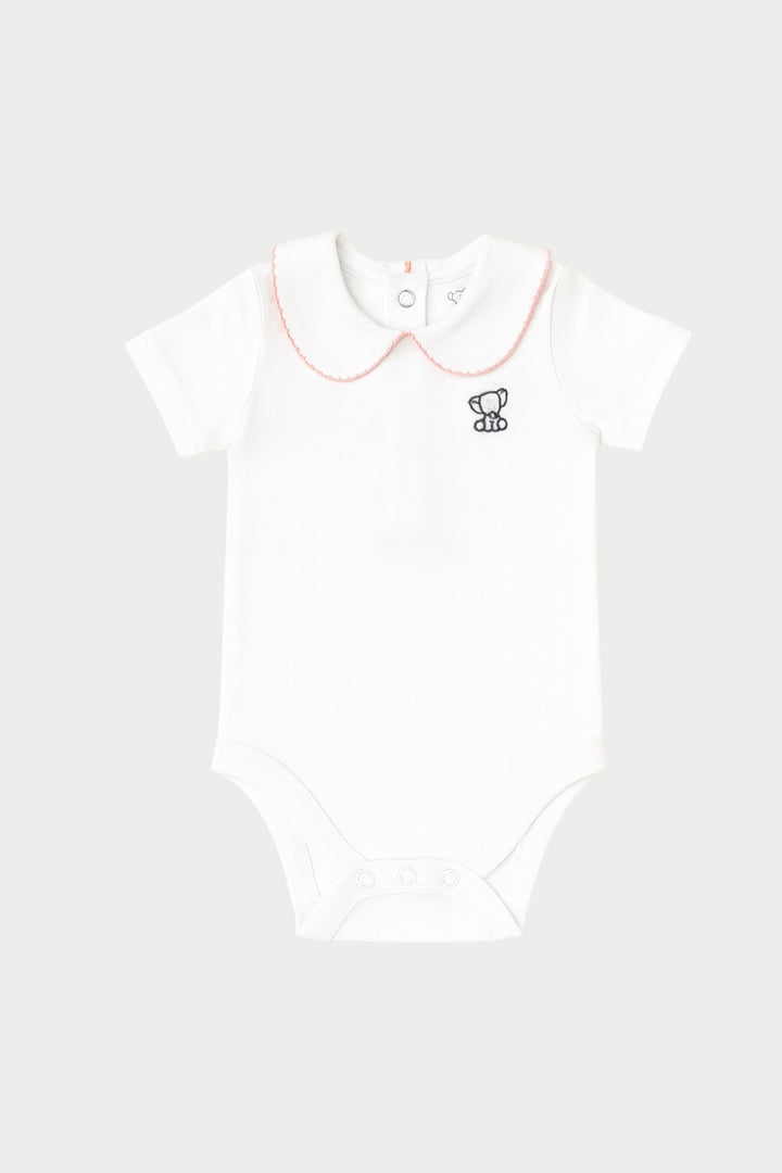 - 2 sets white cotton bodysuit with pink and blue Peter Pan collar