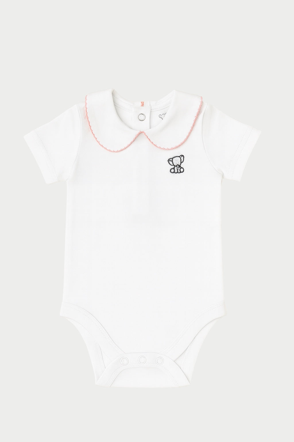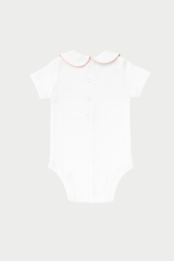 - 2 sets white cotton bodysuit with pink Peter Pan collar